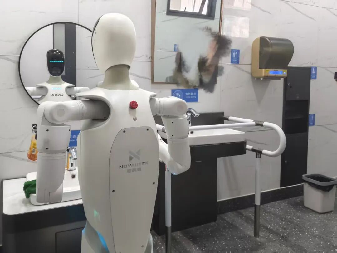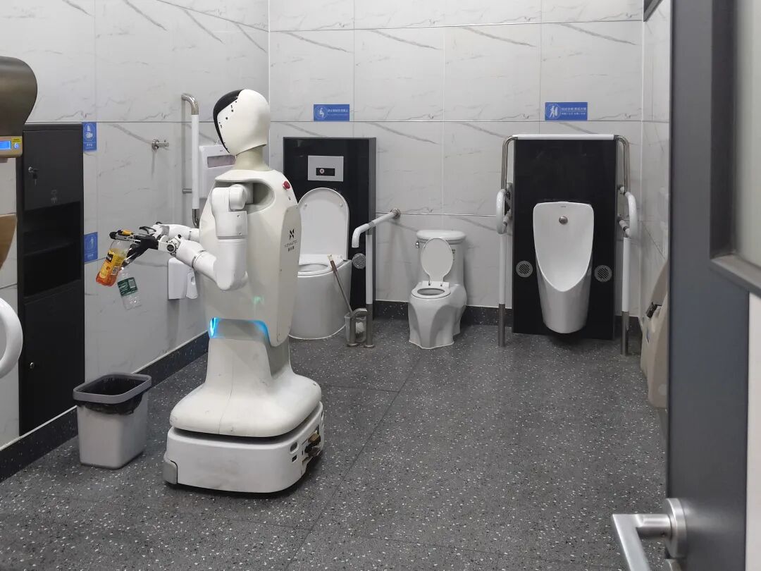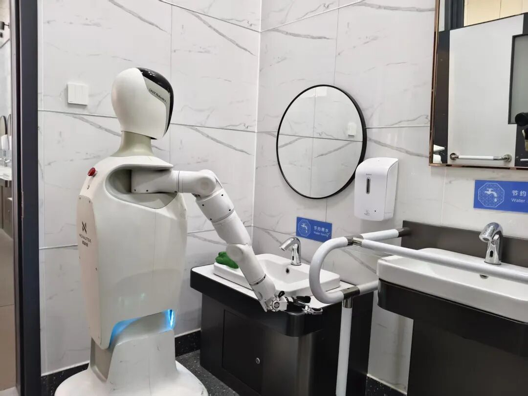 捡拾垃圾、擦拭洗手池、清洁马桶……4月8日,无锡东站出站口附近的卫生间内,一台清洁机器人正埋头“大扫除”,动作利落、有板有眼。这是无锡在公共卫生间投用的首个人形清洁机器人,标志着这座城市再度主动开放场景大门,为更多技术提供真实的验证舞台,让“高大上”的科技产品走入百姓身边的生活“小场景”。