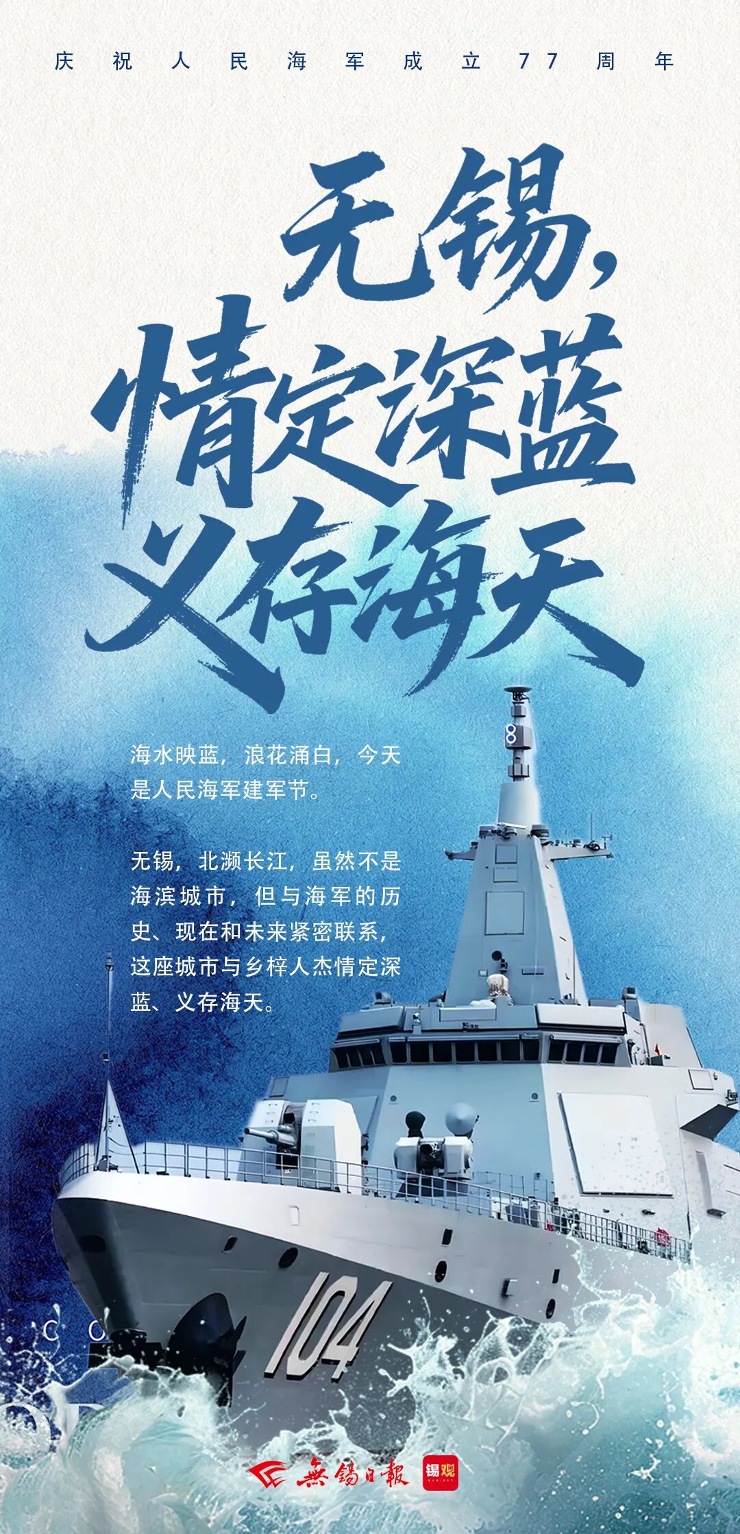 无锡,北濒长江,虽然不是海滨城市,但与海军的历史、现在和未来紧密联系,这座城市与乡梓人杰情定深蓝、义存海天。