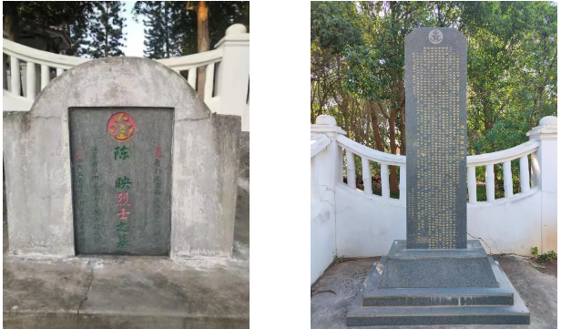▲漳州东山战斗烈士陵园中的碑记和陈映烈士墓