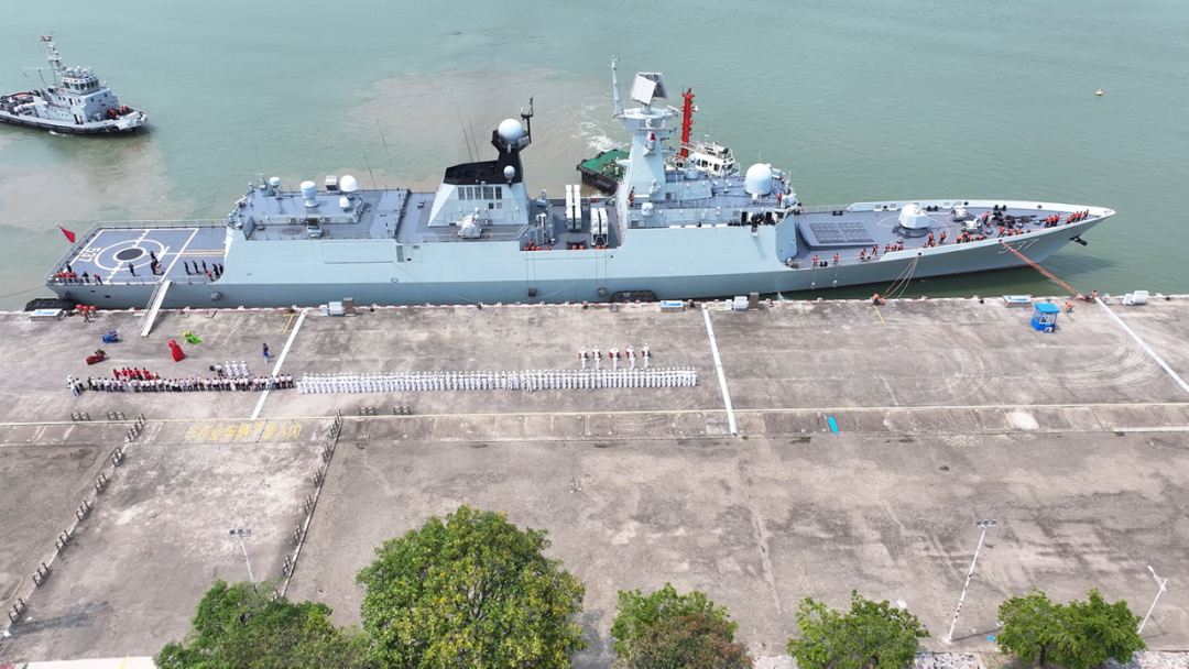 ▲2026年4月15日,宜兴舰靠泊汕头某军港码头,4月23日至25日将面向当地公众开放参观