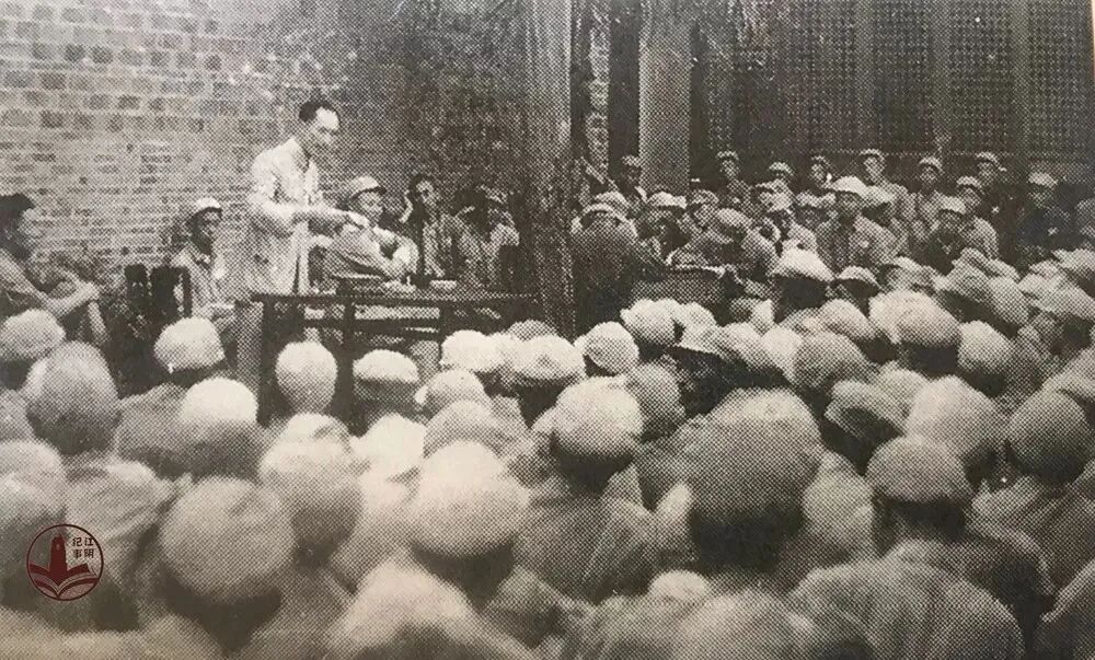 ▲1949年4月28日,华东区海军组建大会,司令员兼政委张爱萍在讲话