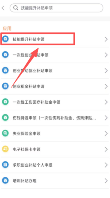 在“关键字搜索”栏输入“技能提升补贴申领”。