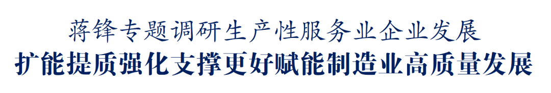 蒋锋在调研中指出,当前我市正在构建以先进制造业为骨干的现代化产业体系,必须同步推动生产性服务业扩能提质,为制造业高质量发展提供强有力支撑。要扩大规模提升质量,聚焦数实融合、检测认证、算力服务等领域,针对性加强本土企业培育和重大项目招引,着力引育龙头企业、做强做大产业,分领域推进生产性服务业向专业化和价值链高端延伸。要突出人工智能运用,围绕“AI+制造”,高水平打造工业智能体和数据集,推广典型应用场景,导入专业服务商,强化算力供给,助力企业建设“产业智脑+智能工厂”。要营造良好产业生态,扎实开展“换位跑一次”活动,及时协调解决企业用地、用人、融资等需求,全方位支持生产性服务业企业依托制造业需求创新技术和模式。