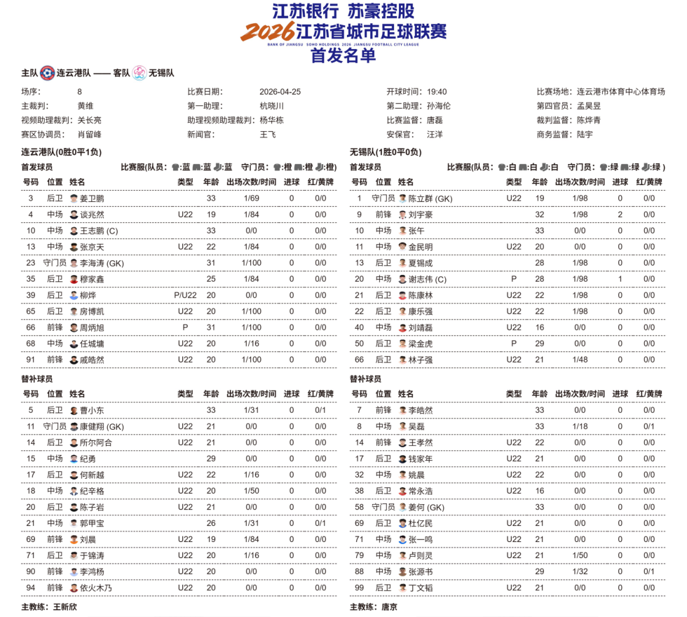 连云港VS无锡,江阴的他们首发!