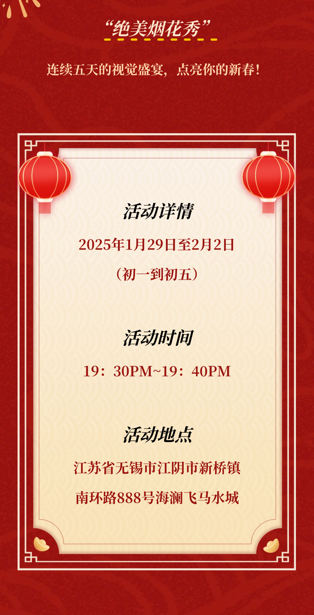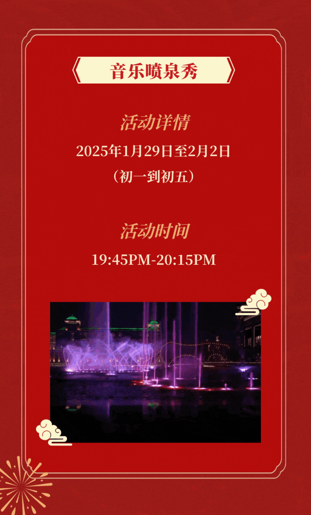 2、2025年1月29日(正月初一)至2月2日(正月初五),每晚17:45至20:00期间,园区内外相关道路、广场将根据活动内容及客流情况,进行不间断交通管制,届时将禁止车辆及游客通行。请办理酒店入住、用餐及游玩体验的游客朋友们提前做好出行计划,避免因现场管控影响行程。