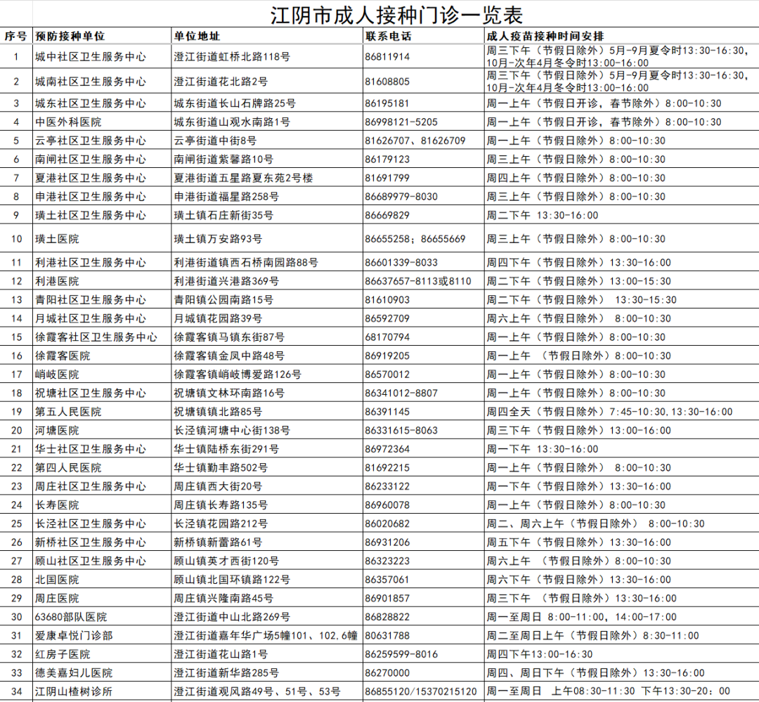 江阴市各成人接种门诊均可提供男性HPV疫苗接种服务。受种者可电话与接种门诊完成预约后,前往相应接种单位完成接种。江阴市各成人接种门诊见下图: