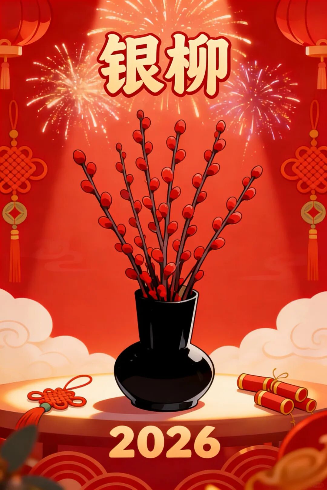 银柳枝条劲挺,花蕾通红