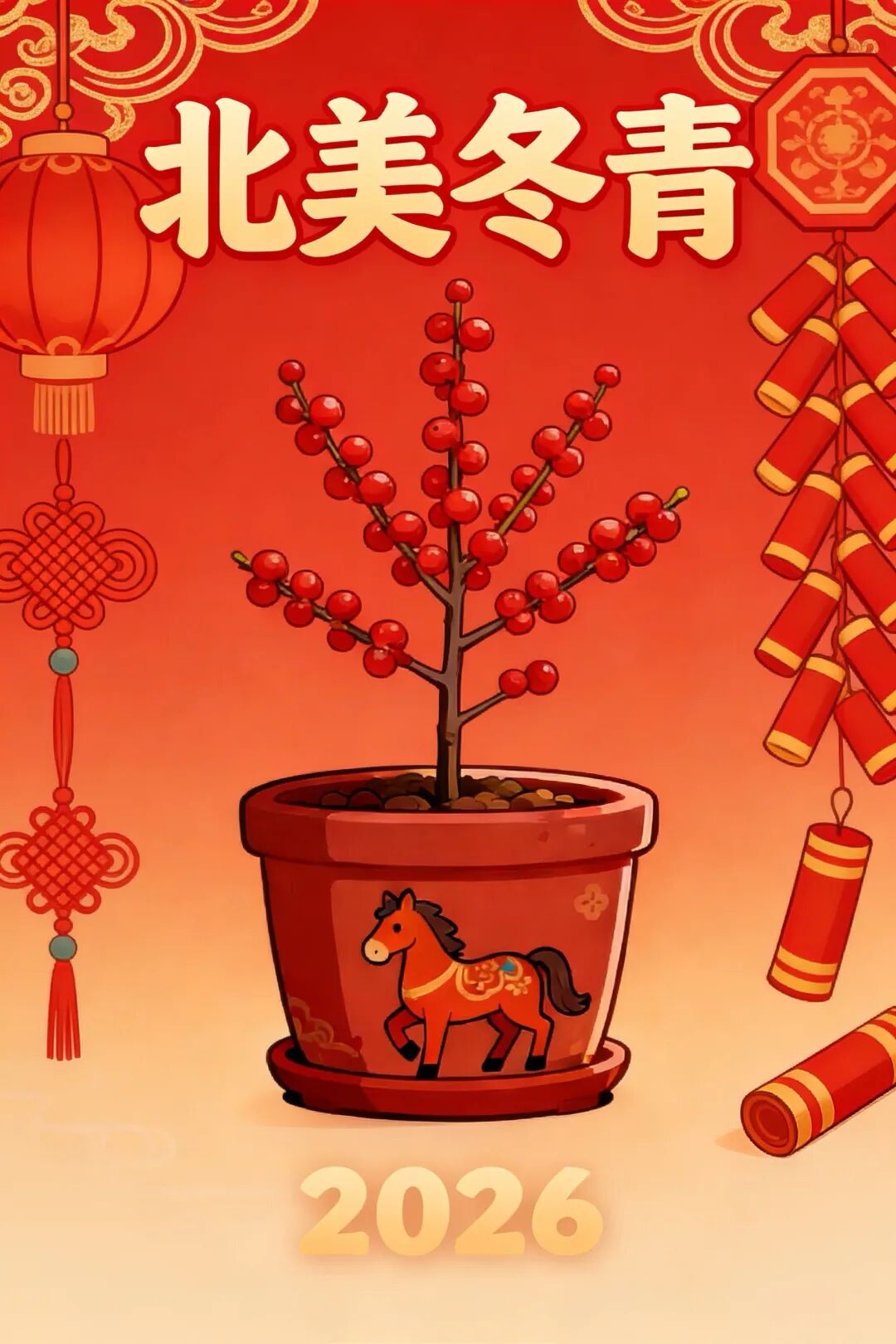 北美冬青红果满缀
