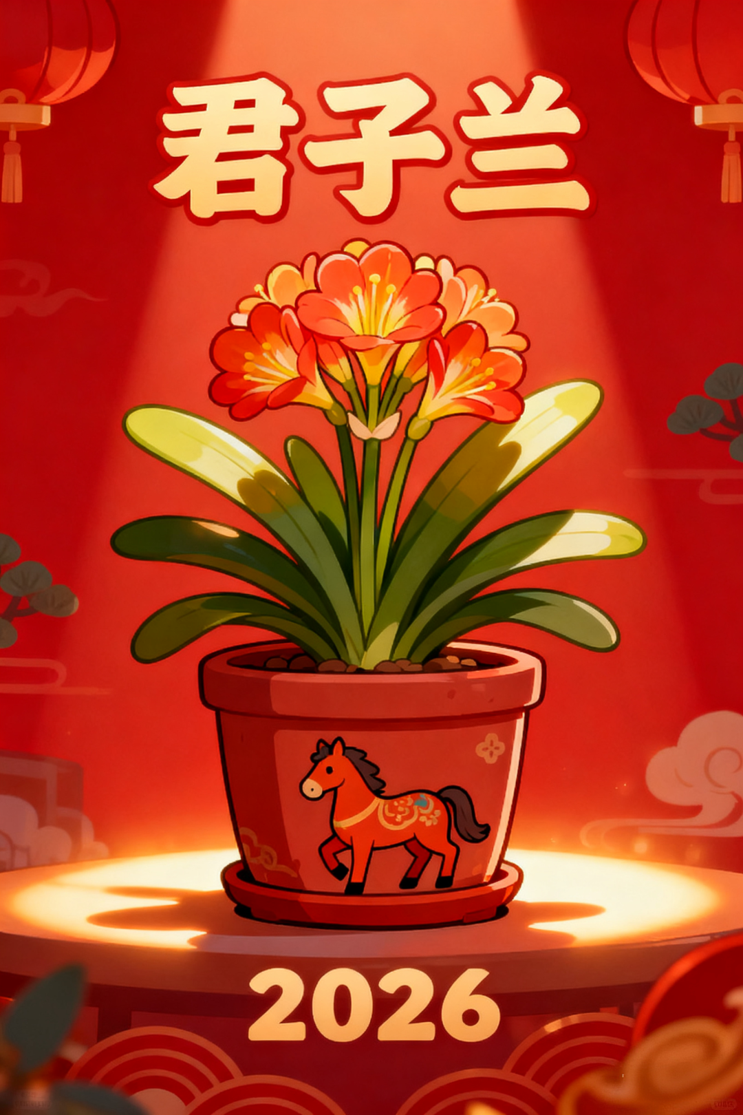 君子兰叶片宽厚挺拔花箭从容舒展愿新岁里江阴人的日子如君子般笃定家宅安和,步步从容