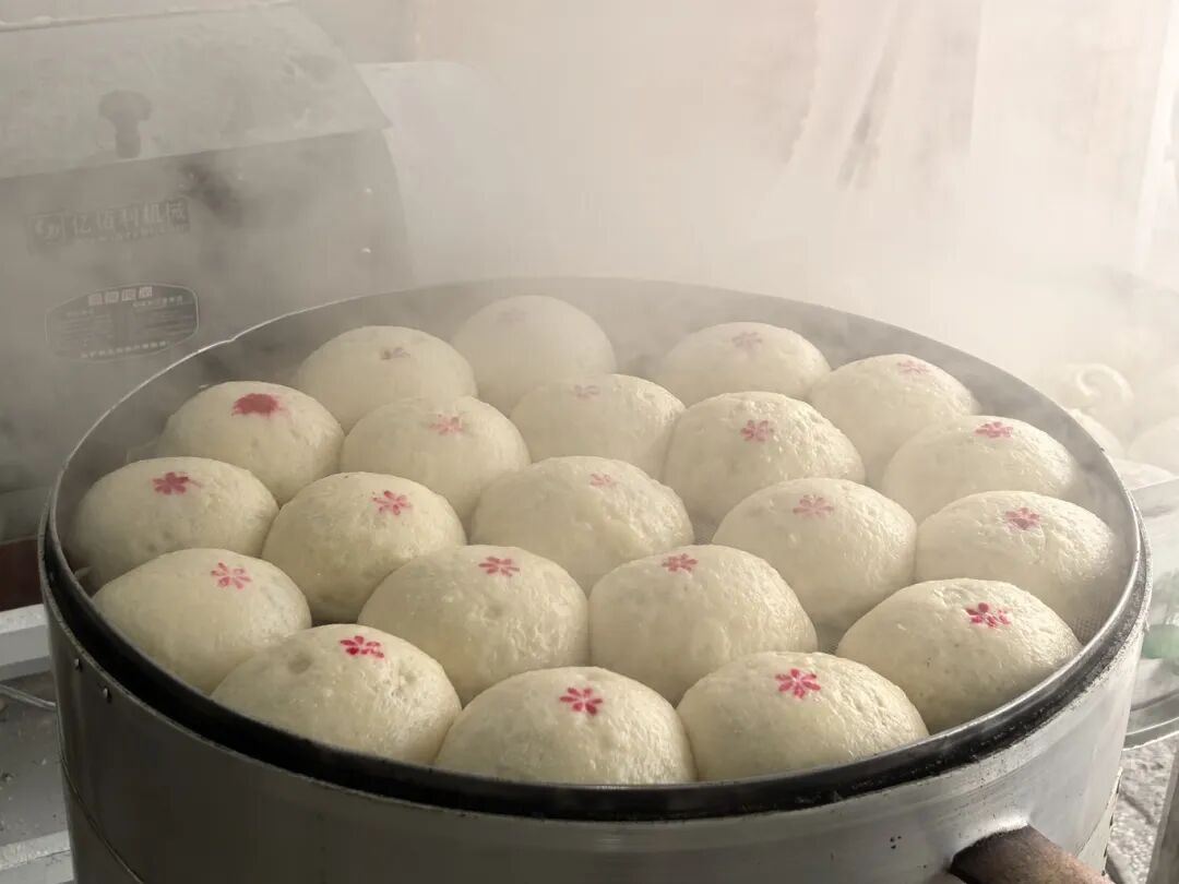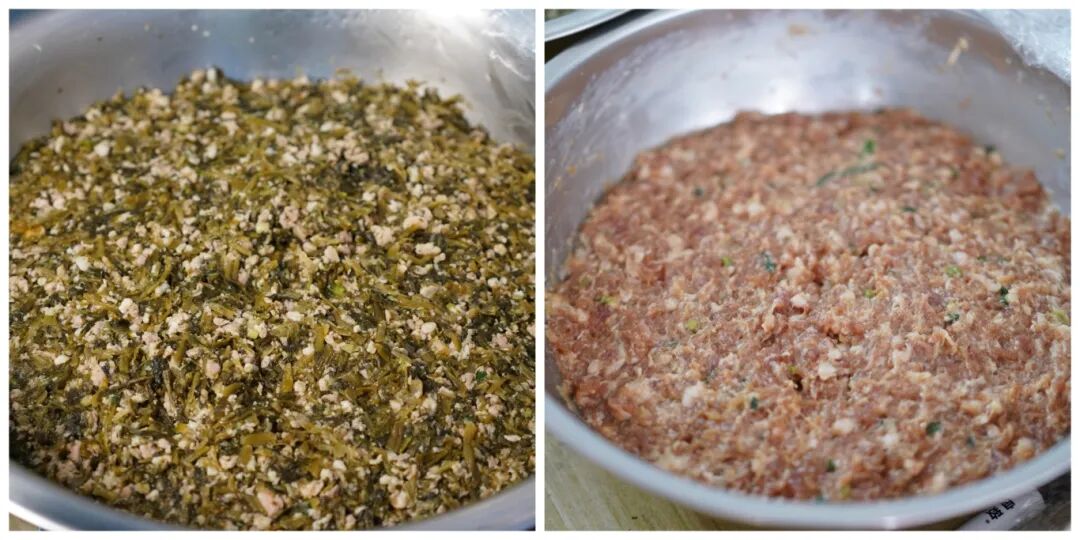 定做馒头分两种,一种是直接请店家加工,还有一种是带着自家做好的馅料来加工馒头,咸菜肉馅、萝卜丝肉馅、笋干肉馅和豆沙馅都有,其中加工咸菜肉馅馒头的最多。