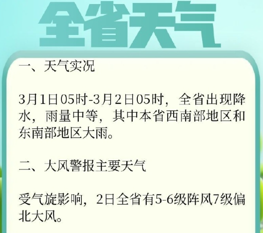 2日全省有5-6级阵风7级偏北大风