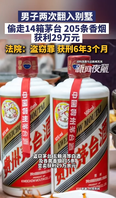 1989年出生的肖某曾因犯盗窃罪被判刑1年6个月,于2009年12月刑满释放。去年7月,肖某“重操旧业”,先后两次翻入江苏宜兴一别墅内,偷走14箱茅台酒和205条香烟等,并卖出获利290700元。红星新闻记者从中国裁判文书网获悉,一审法院江苏省宜兴市人民法院以犯盗窃罪判处肖某有期徒刑6年3个月。