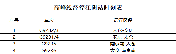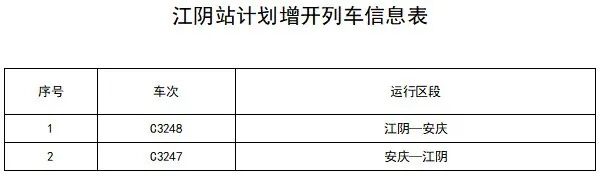 江阴站增开了以下列车
