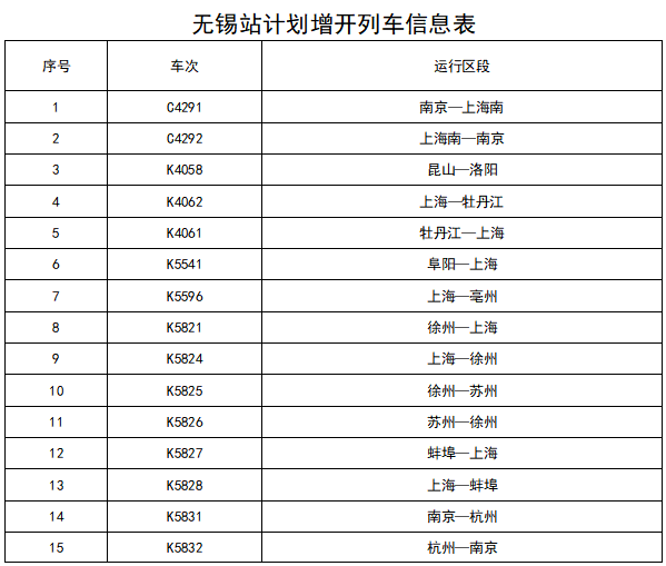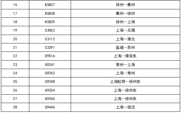 上海铁路12306增开列车信息表