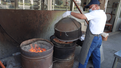4、用吊炉、底炉同时加热,并用吊炉的热量将饼烘熟。
