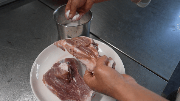 1、用盐均匀撒在扇子骨上进行腌制约一周时间;