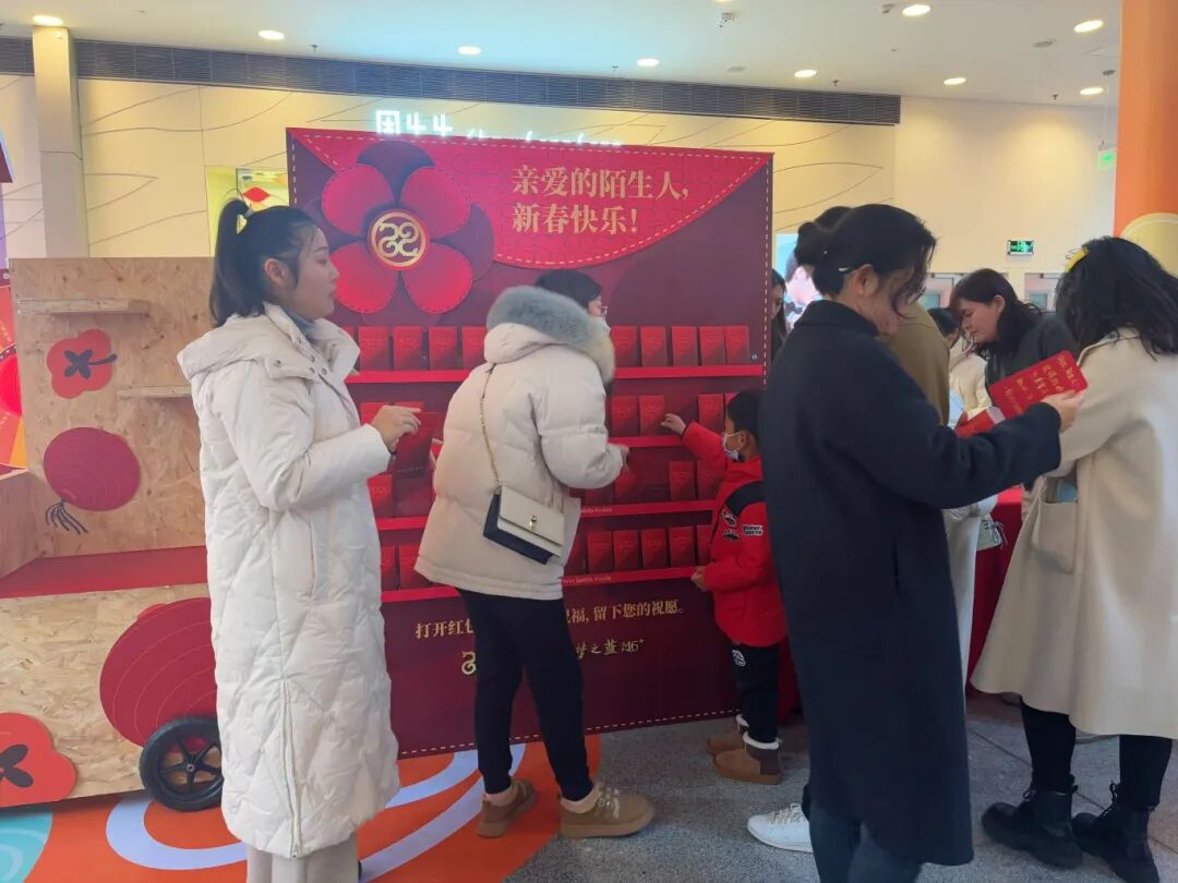 快闪活动的游戏互动区域人气最旺。“春晚金曲金句接龙活动”“亲爱的陌生人,新春快乐活动”“幸运大转盘活动”分别以接龙春晚金曲,抽取、书写新春祝福以及转动幸运大转盘赢明信片和文创、非遗产品等形式吸引大批市民朋友围观参加。