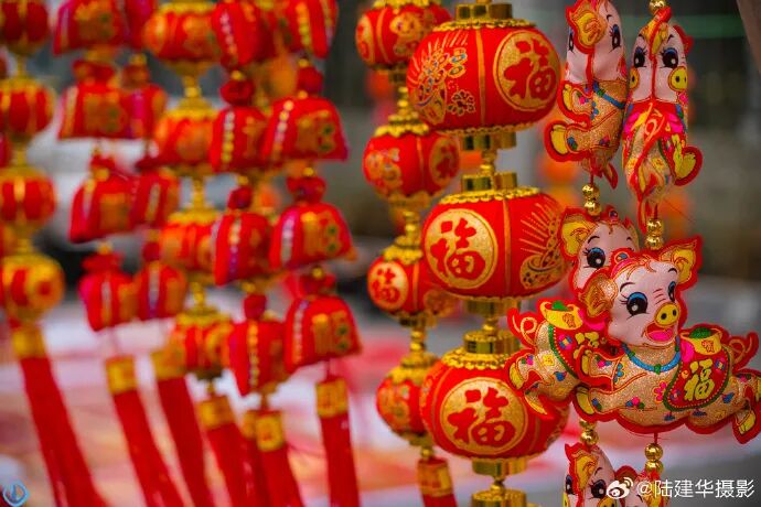 随处可见大红灯笼、福字