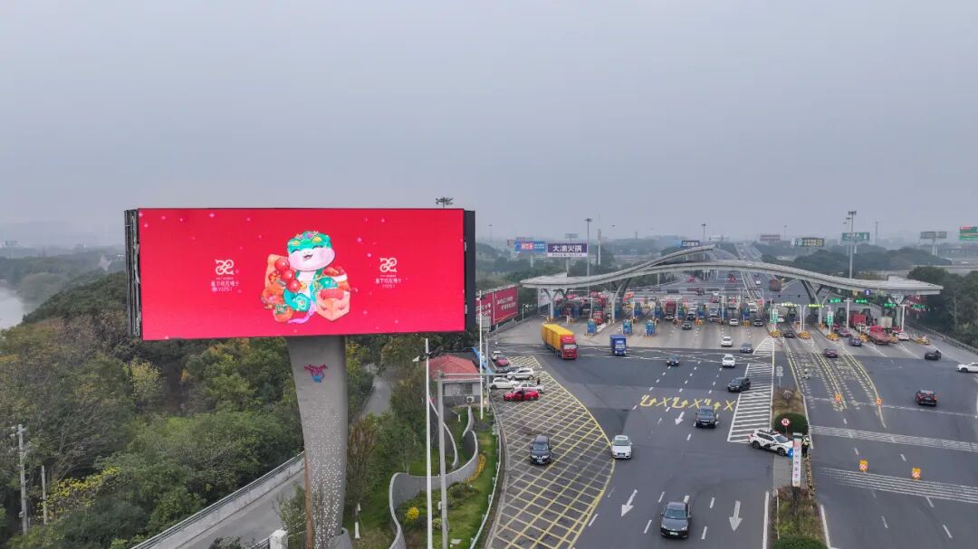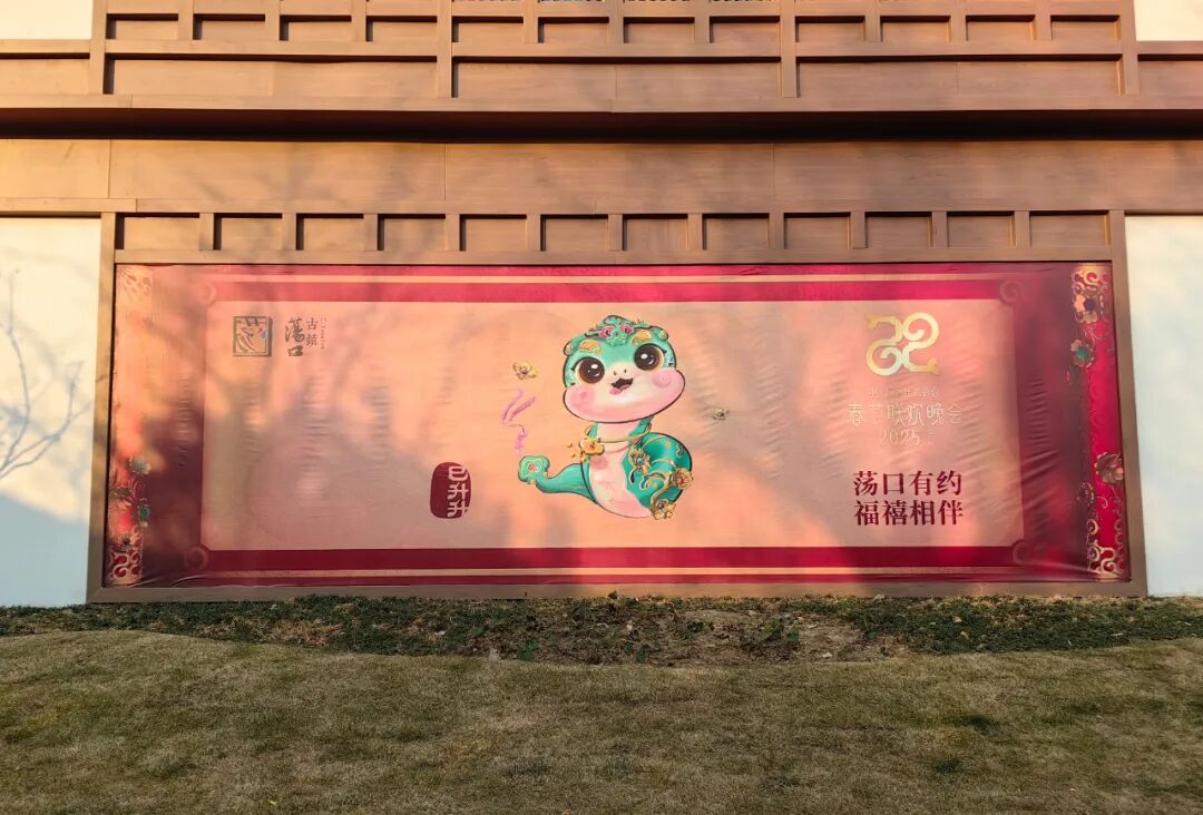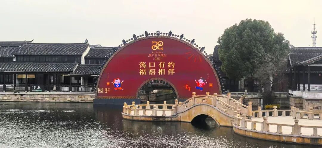 荡口古镇、荟聚中心、红豆万花城等繁华之地春晚海报的滚动播放成为了一道独特的风景线