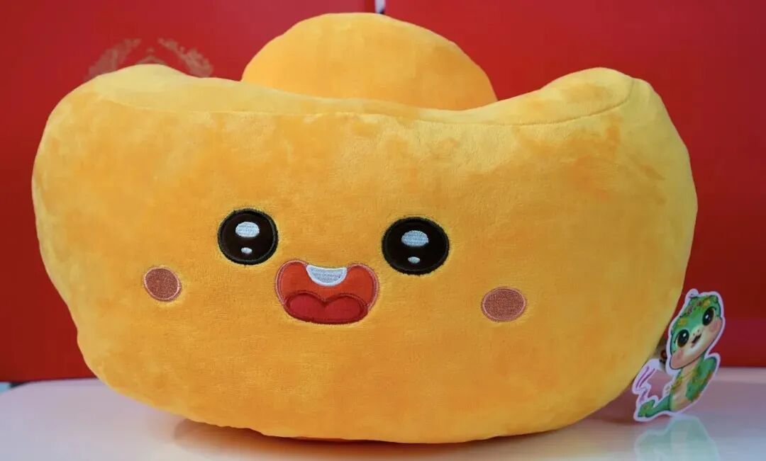 以元宝为设计原型,造型可爱,精致柔软,寓意财源广进、日进斗金,也寄托对新年的美好期盼。