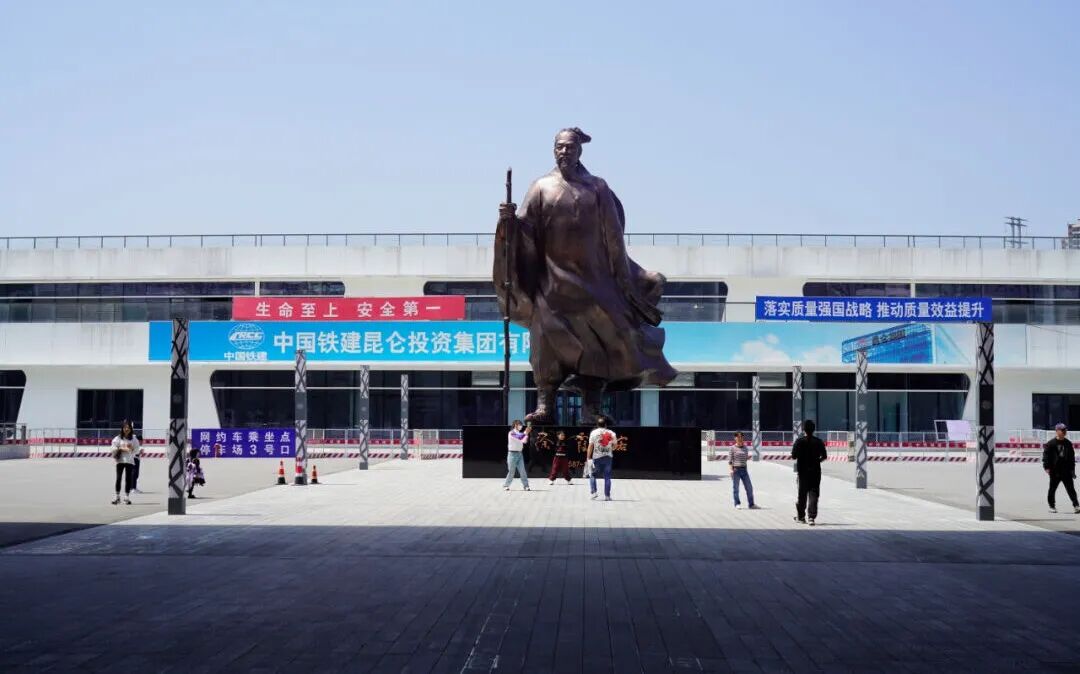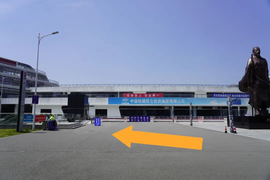 乘客从江阴站通过闸机出站后(此时乘客在地面一层),首先看到的便是徐霞客雕像,根据下图指引,从徐霞客雕像两侧的S1线江阴高铁站3号口进入,沿着手扶电梯到地下一层即可到达网约车接站区。