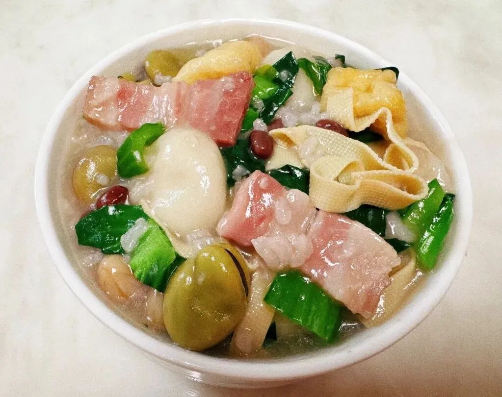 江阴的腊八粥中,用的原料有很多,其中,粮食类有大米、糯米、玉米、小米等;豆类有花生米、黄豆、红豆、绿豆、豇豆、蚕豆等;豆制品类有百叶、油豆腐等;蔬菜中根茎类有白萝卜、茨菇等,叶片类有大青菜。