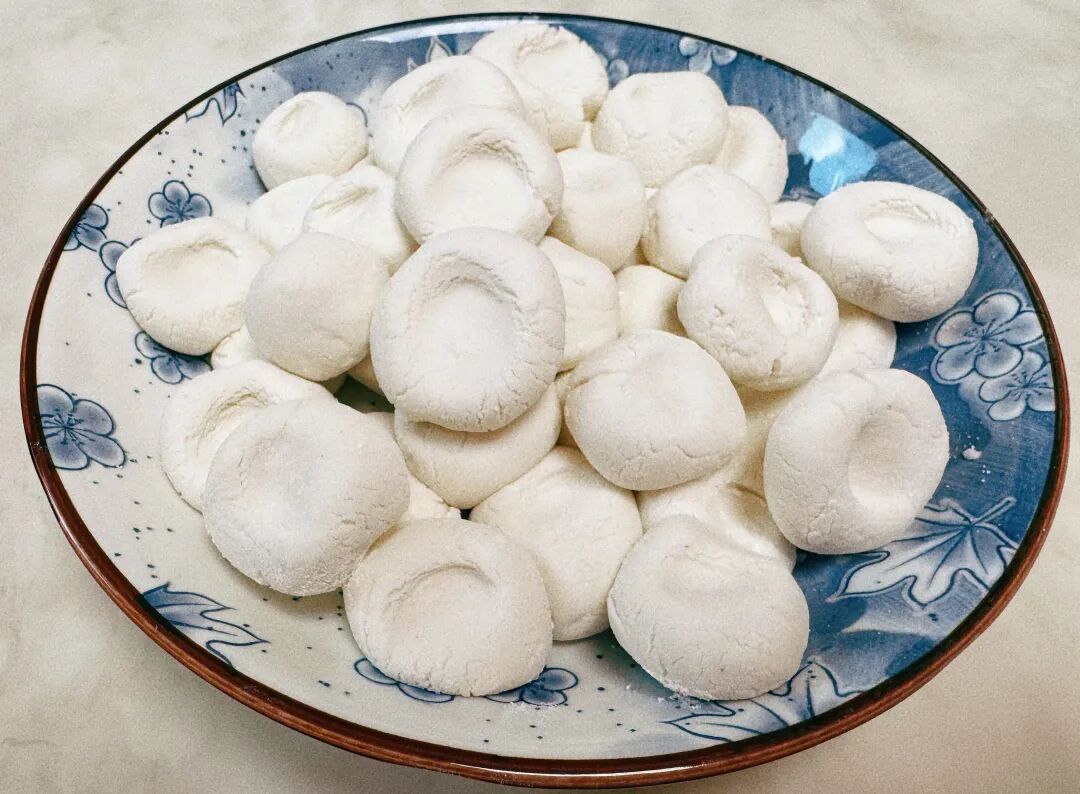 老法腊八粥里还会放“瘪子团”,是用糯米粉和大米粉按一定比例做成的实心小团子,因每个小团子中间有个被按扁的印子,像瘪进去的团子,所以就叫“瘪子团”了。