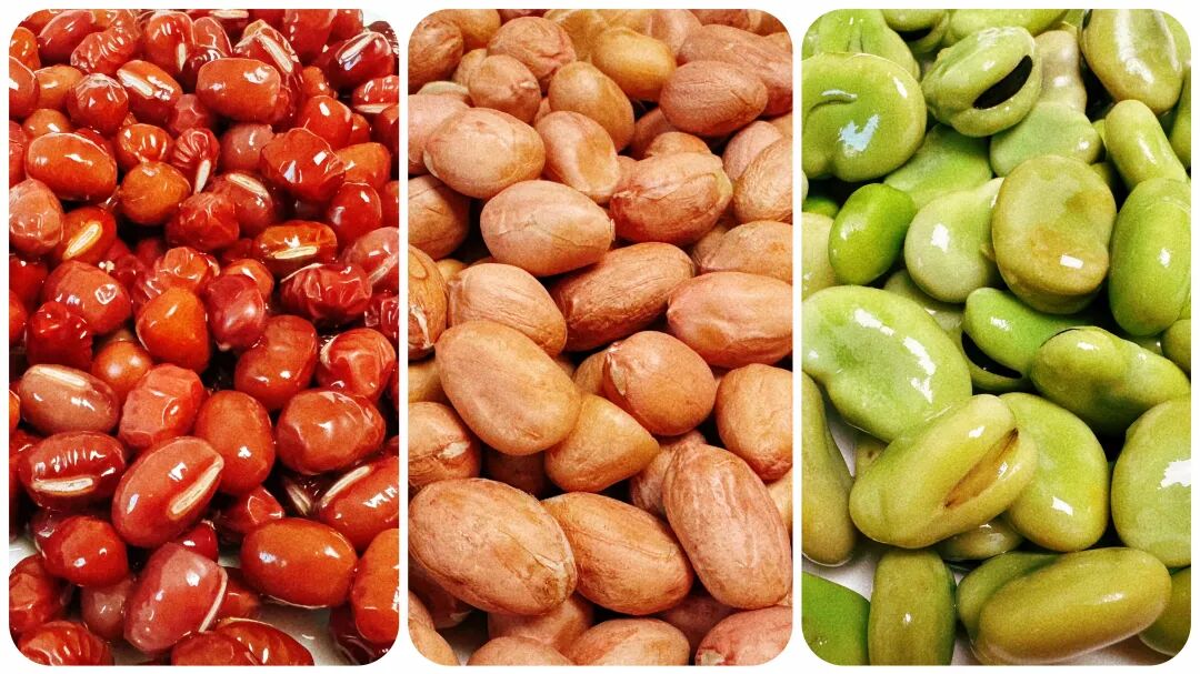 一、将豆类原料洗净、淘清后,放在冷水或温水中浸泡,待其涨胖、发圆后捞出,沥干水待用。